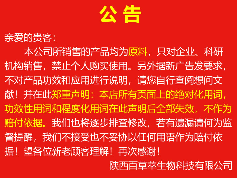 陜西百草萃生物科技有限公司,位于陜西省咸陽(yáng)市秦都區(qū)濱河西路1號(hào)大秦御港城,公司成立于1996年,主要從事天然植物種植、研發(fā)、生產(chǎn)、加工、銷售為一體的高科技企業(yè)。主營(yíng)醫(yī)藥原料、保健品原料、化妝品原料,精細(xì)化工原料。公司致力于人類健康保護(hù)事業(yè)“ 以科技為動(dòng)力,以質(zhì)量求生存” 的本質(zhì),依托陜西高新科技技術(shù)人才和科研優(yōu)勢(shì),已形成多學(xué)科、全方位、高層次的技術(shù)管理精英團(tuán)隊(duì)。充分利用秦巴山區(qū)的天然藥物資源,歷經(jīng)多年發(fā)展為打造百草萃生物品牌奠定了基礎(chǔ)。